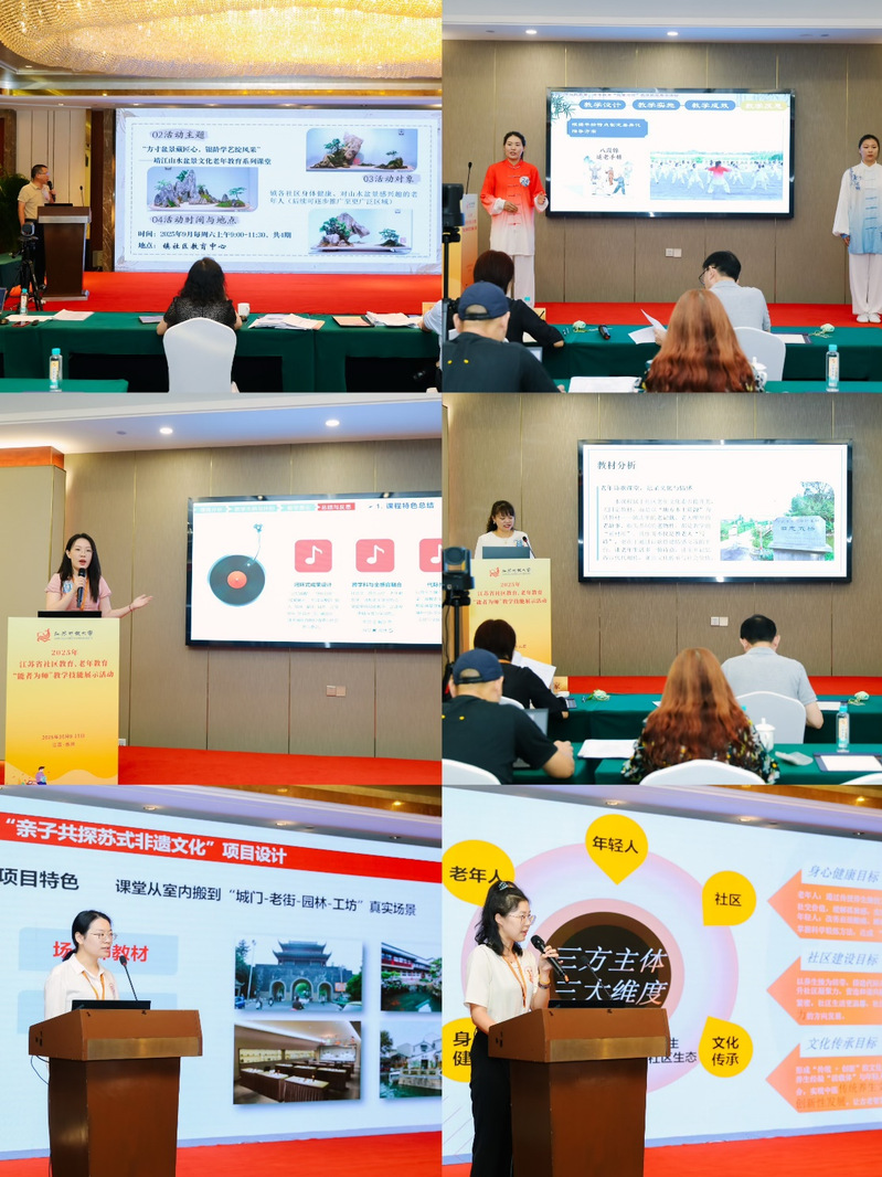 本次活动既有通识课程说课和项目策划能力现场展示,也有技能课程说课视频展示。活动采用线上线下深度融合的创新模式,现场活动依托江苏学习在线平台进行实时直播,广泛向全省居民展示一线教师的教学风采。参展选手们以精湛的教学技艺和独特的教学风格,充分向评委与观众展现了社区教育工作者在课程设计与项目实践方面的专业水准。